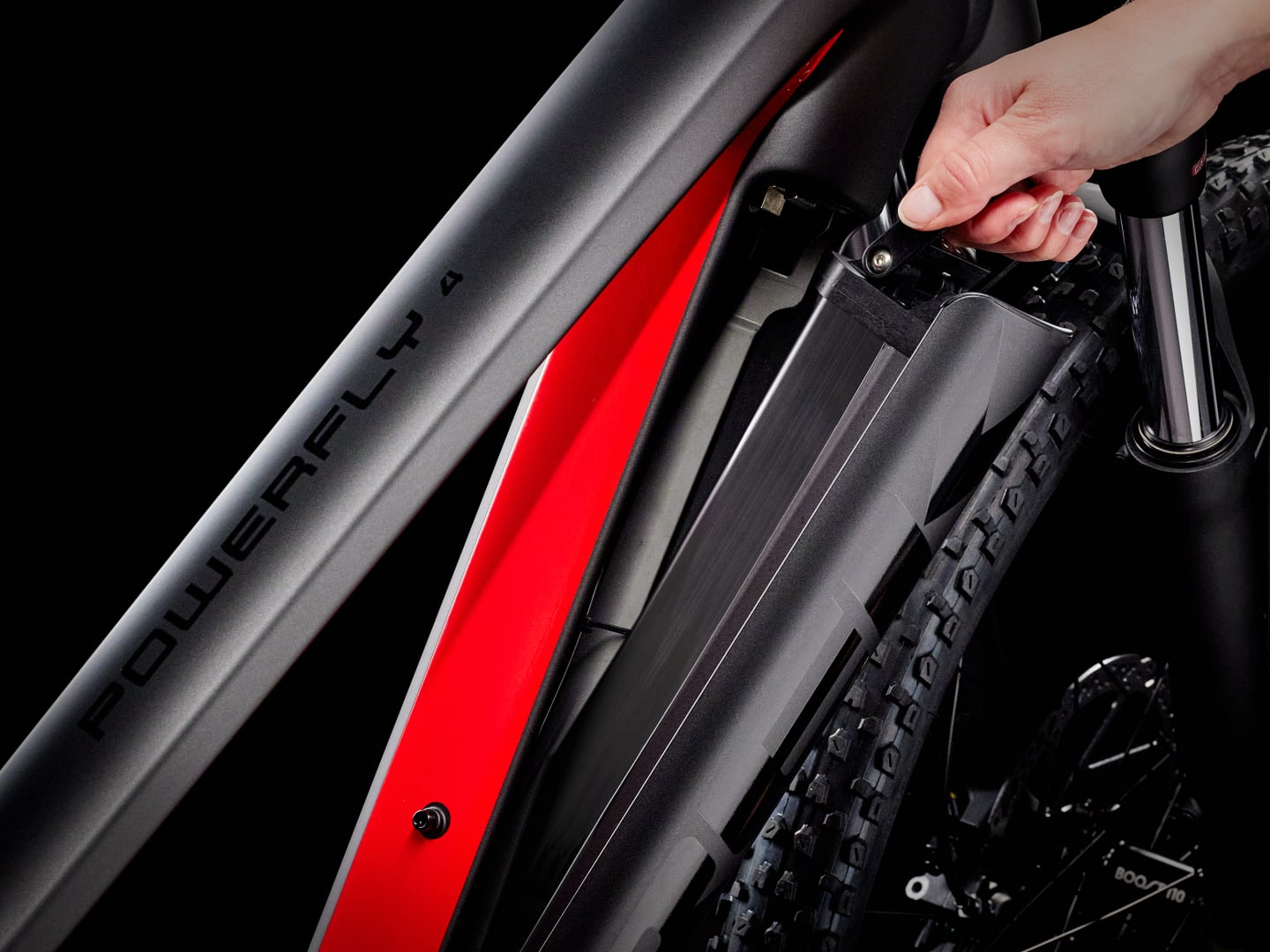 - Trek's Removable Integrated Battery (RIB) system looks great and is super user-friendly: it fully hides the battery in the frame for protection, makes it easy remove the battery without tools and lets you mount a water bottle cage