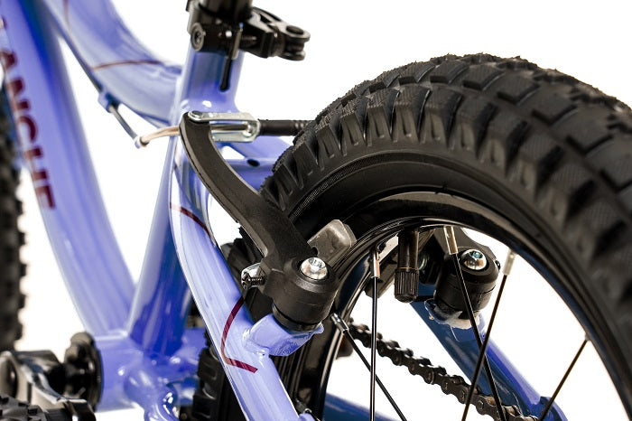 The Avalanche Shine 14” – Lilac / Indigo is a beautifully designed first-pedal bicycle for young riders ready to build confidence, balance, and independence. Its lightweight alloy frame, training wheels, and low standover height make it perfect for easy starts and safe, stable riding.