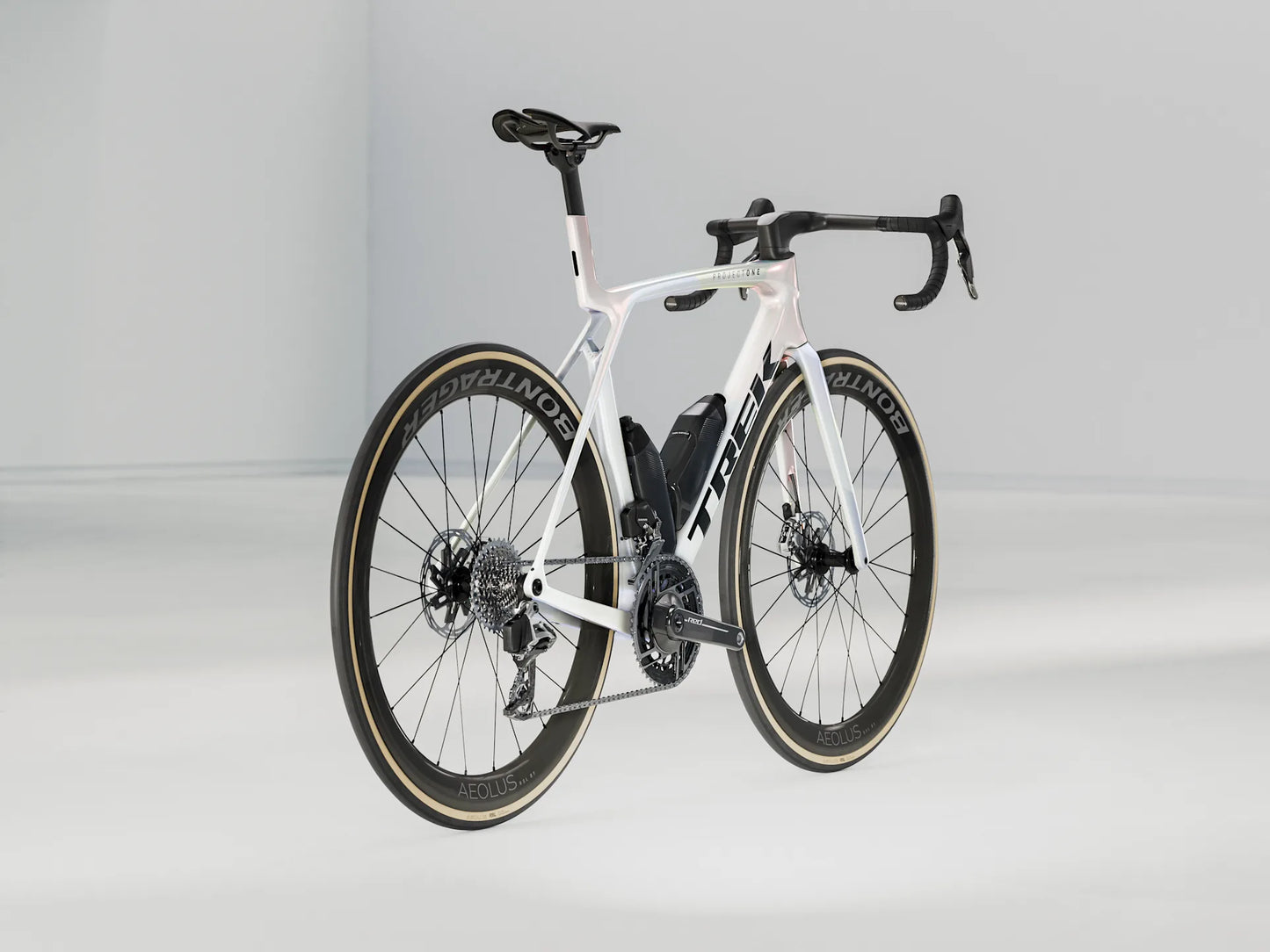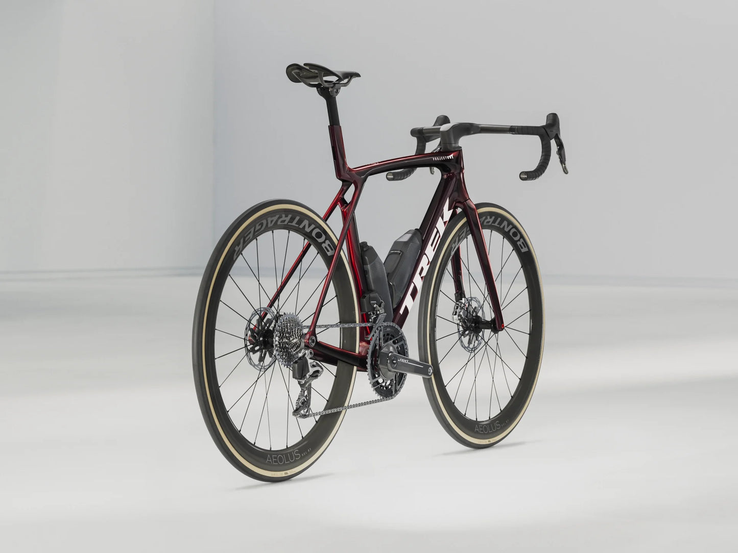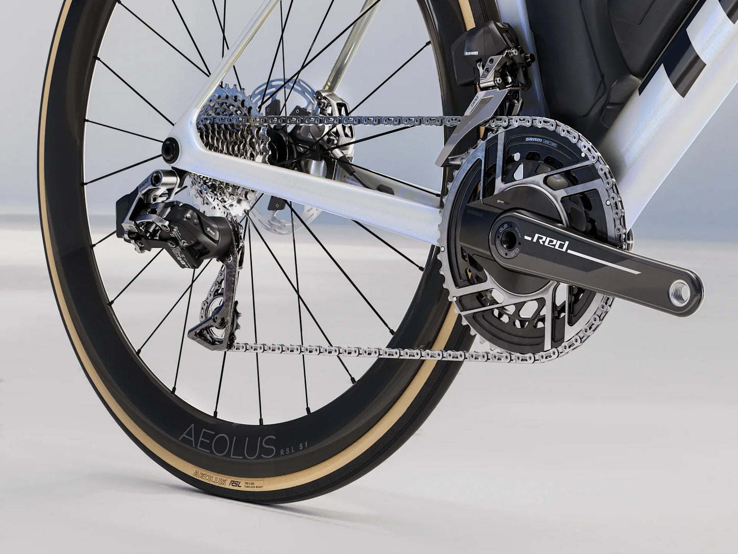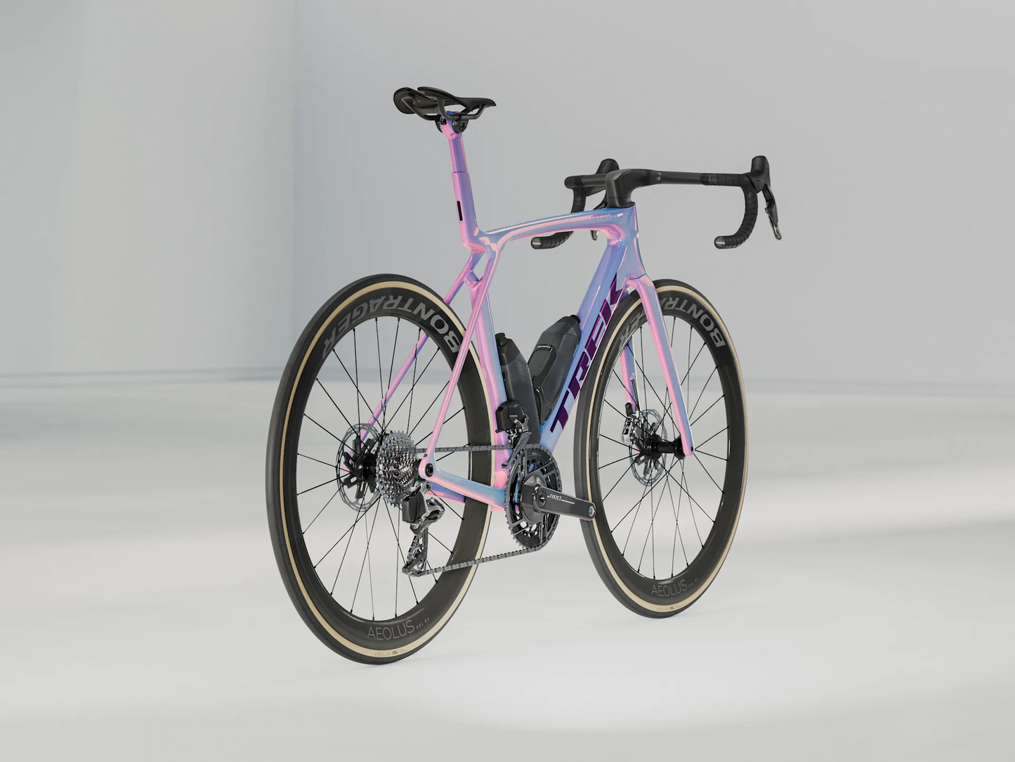 The Madone SLR 9 AXS Gen 8 is built for dominating the roads with equal parts light weight and aerodynamic speed. It's crafted from our highest-level 900 Series OCLV Carbon that's not only insanely light, but delivers aerodynamic shapes for crushing descents and straightaways. Lightweight IsoFlow frame technology means that Madone doesn't sacrifice comfort for speed. This build comes ready to win with a top-level SRAM RED AXS drivetrain with a power meter, carbon wheels, a Trek Aero RSL one-piece carbon bar/stem and RSL Aero Bottles and Cages for more drag reduction