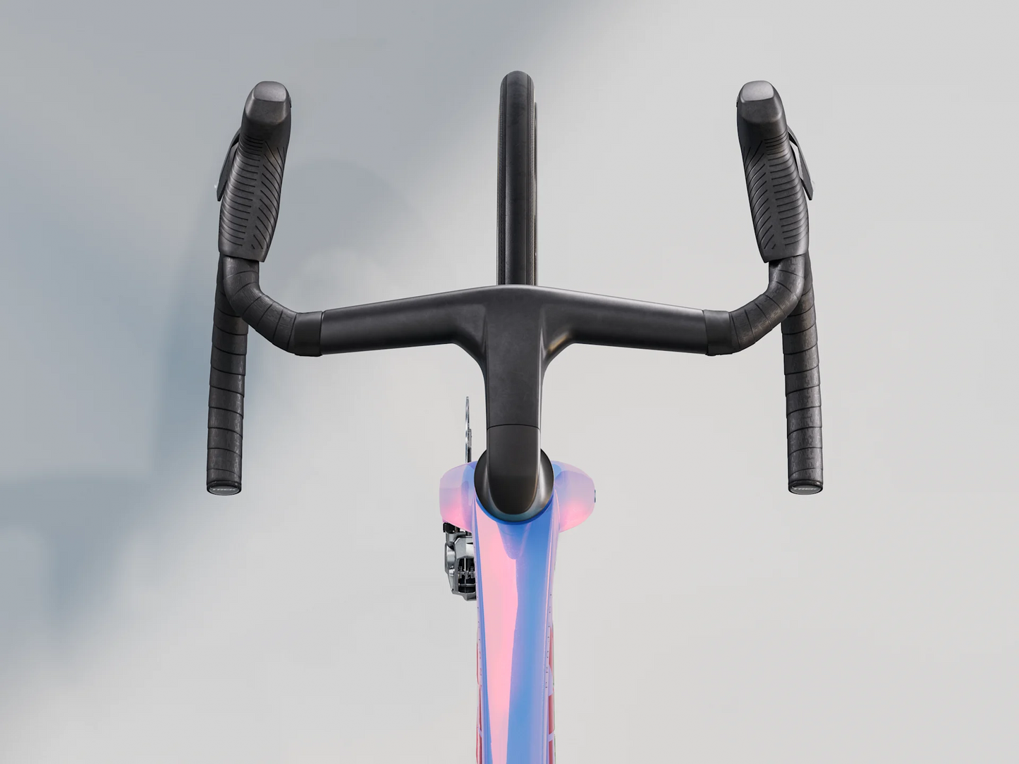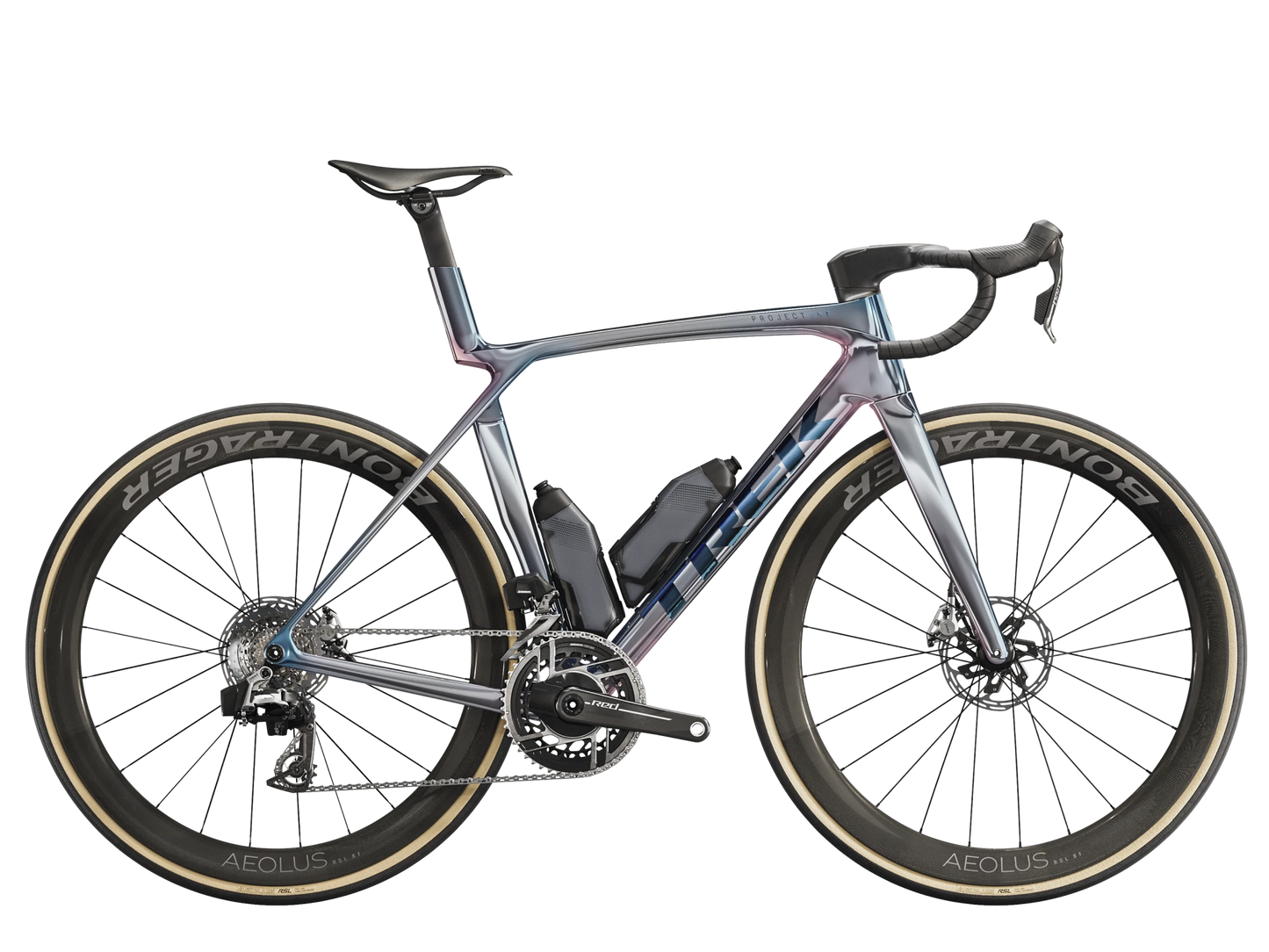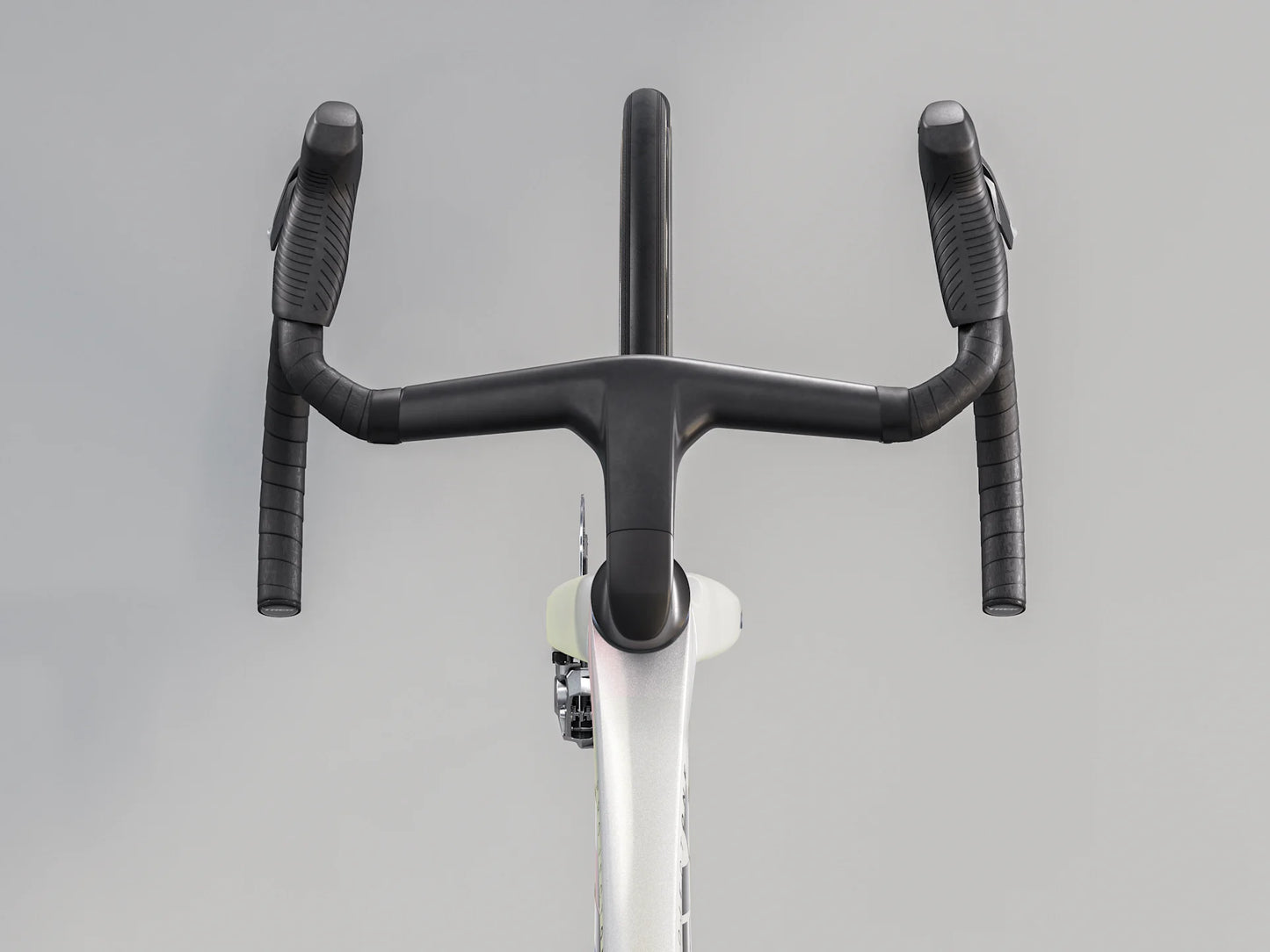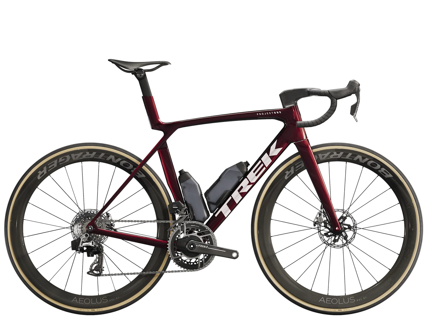 The Madone SLR 9 AXS Gen 8 is built for dominating the roads with equal parts light weight and aerodynamic speed. It's crafted from our highest-level 900 Series OCLV Carbon that's not only insanely light, but delivers aerodynamic shapes for crushing descents and straightaways. Lightweight IsoFlow frame technology means that Madone doesn't sacrifice comfort for speed. This build comes ready to win with a top-level SRAM RED AXS drivetrain with a power meter, carbon wheels, a Trek Aero RSL one-piece carbon bar/stem and RSL Aero Bottles and Cages for more drag reduction