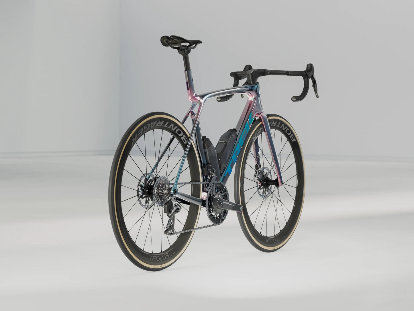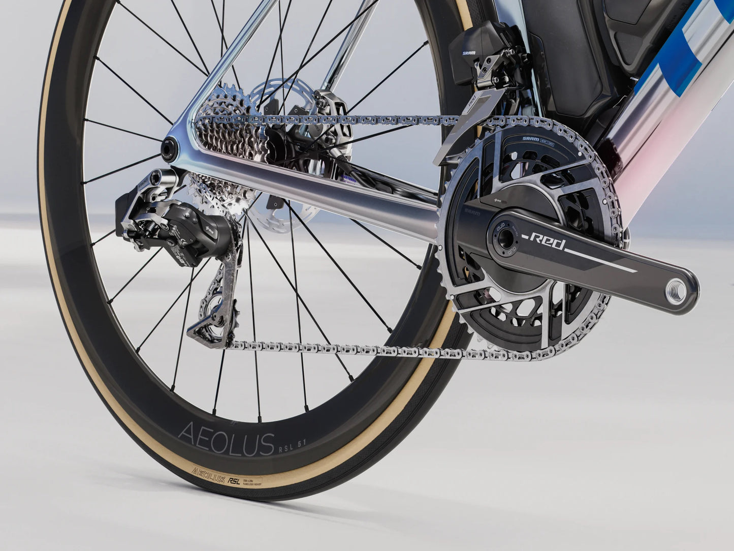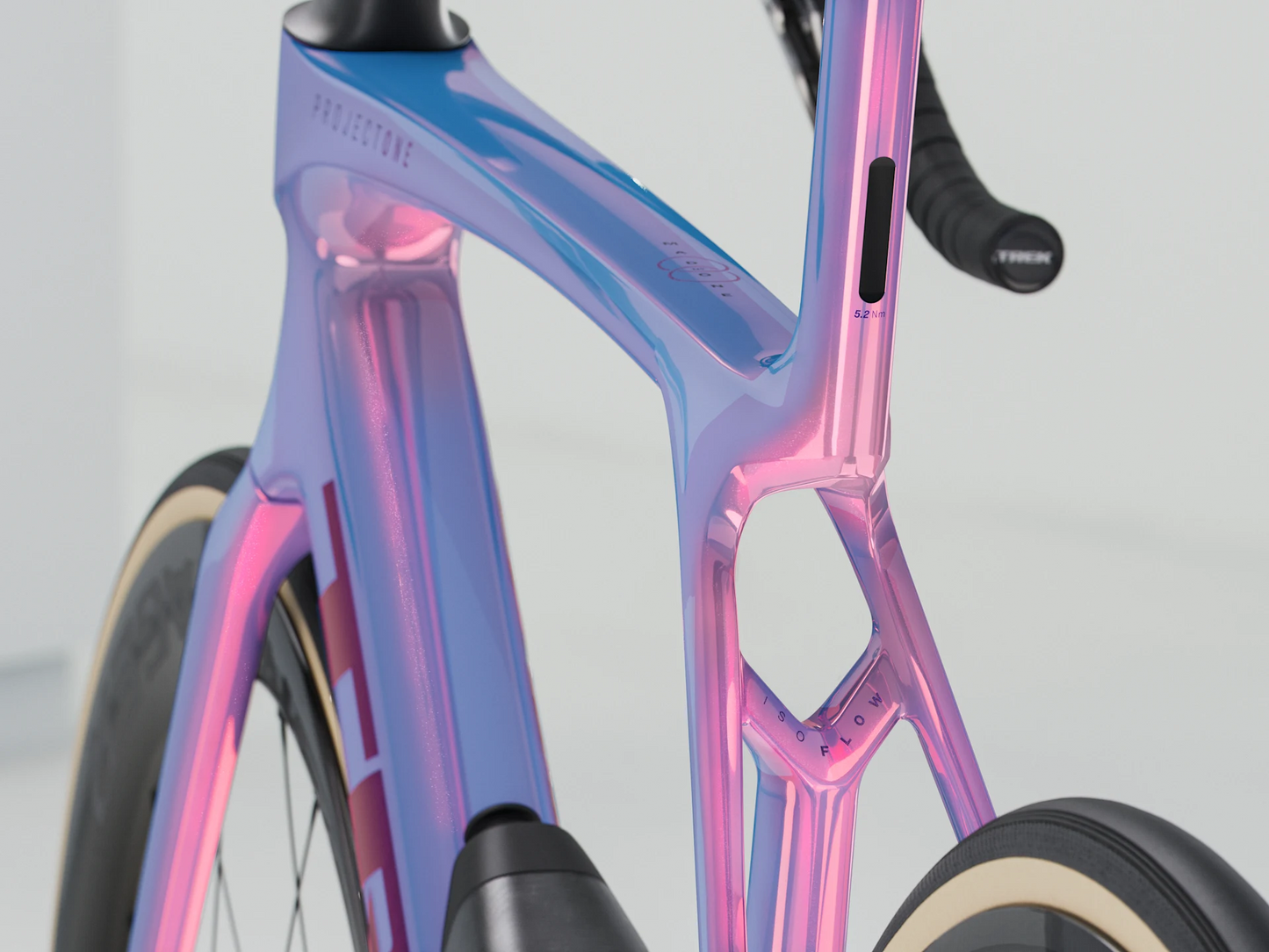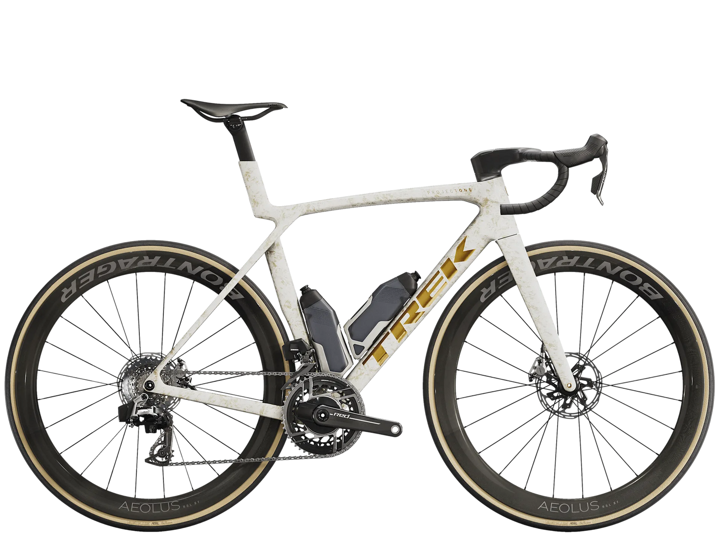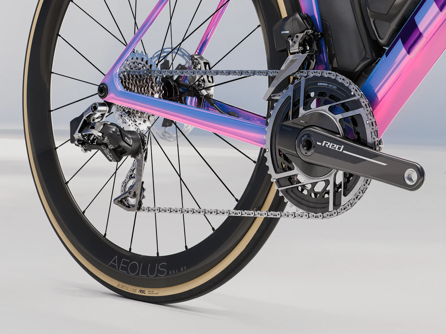 The Madone SLR 9 AXS Gen 8 is built for dominating the roads with equal parts light weight and aerodynamic speed. It's crafted from our highest-level 900 Series OCLV Carbon that's not only insanely light, but delivers aerodynamic shapes for crushing descents and straightaways. Lightweight IsoFlow frame technology means that Madone doesn't sacrifice comfort for speed. This build comes ready to win with a top-level SRAM RED AXS drivetrain with a power meter, carbon wheels, a Trek Aero RSL one-piece carbon bar/stem and RSL Aero Bottles and Cages for more drag reduction
