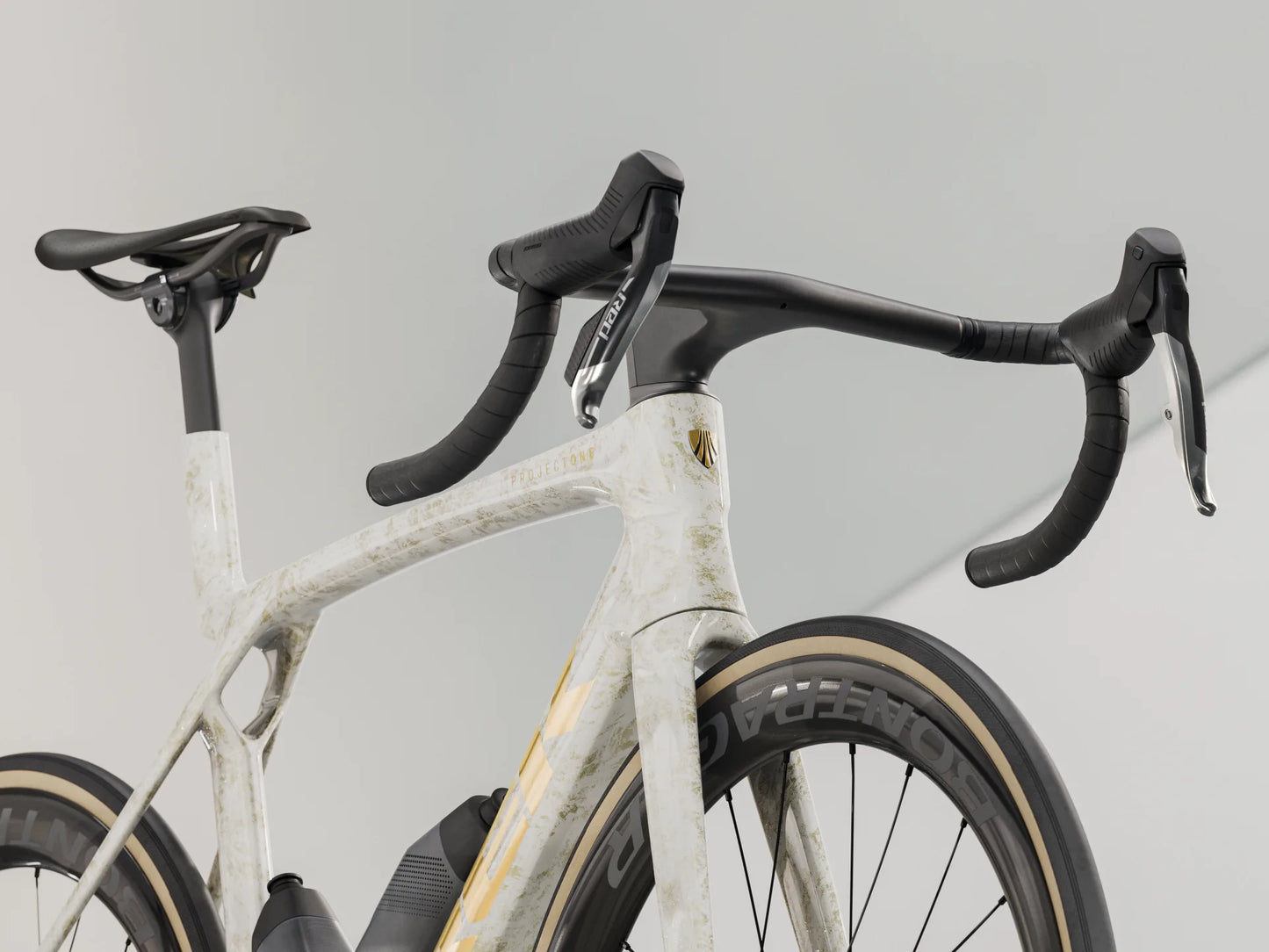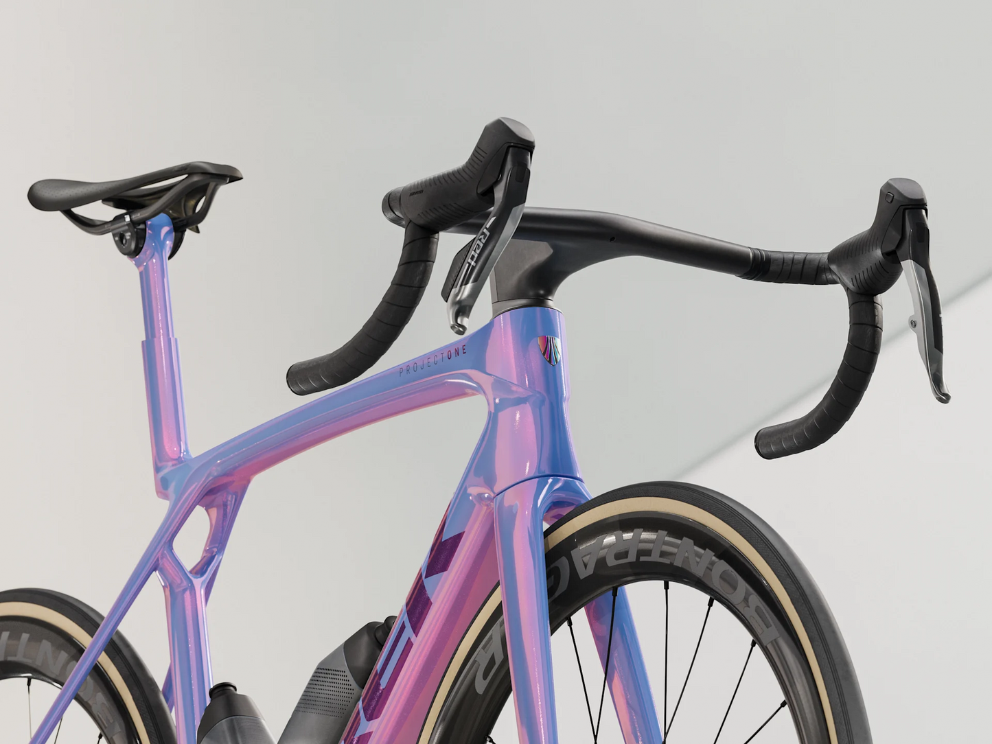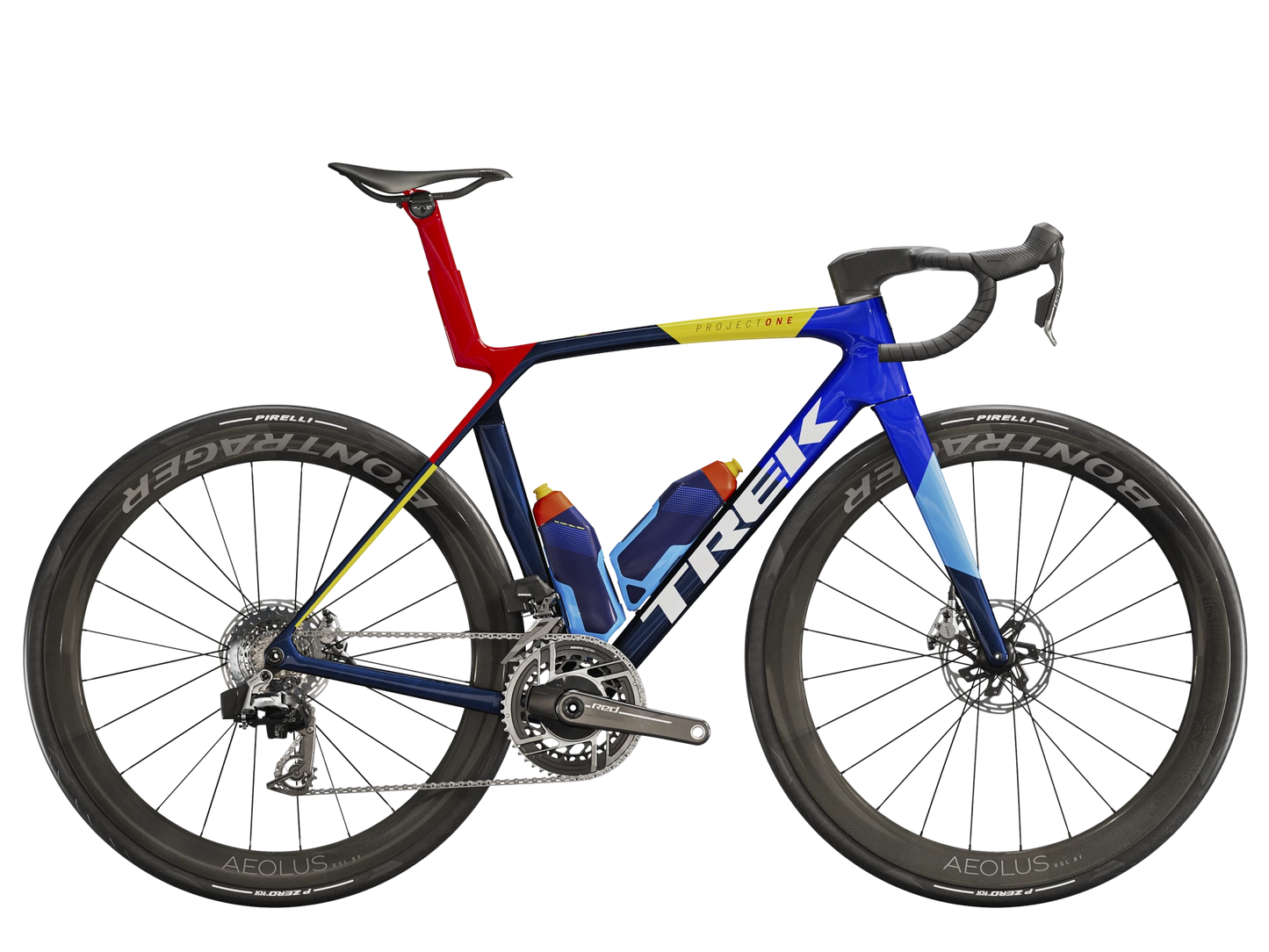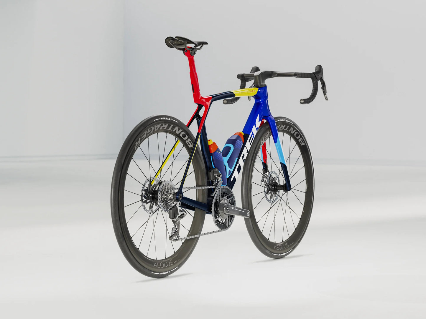 The Madone SLR 9 AXS Gen 8 is built for dominating the roads with equal parts light weight and aerodynamic speed. It's crafted from our highest-level 900 Series OCLV Carbon that's not only insanely light, but delivers aerodynamic shapes for crushing descents and straightaways. Lightweight IsoFlow frame technology means that Madone doesn't sacrifice comfort for speed. This build comes ready to win with a top-level SRAM RED AXS drivetrain with a power meter, carbon wheels, a Trek Aero RSL one-piece carbon bar/stem and RSL Aero Bottles and Cages for more drag reduction